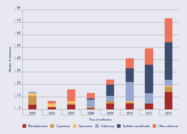 Le 31 janvier dernier à Bruxelles l’European Monitoring Centre for Drugs and Drug Addiction (EMCDDA) et Europol ont révélé dans leur rapport que 73 nouvelles drogues de synthèse ont été identifiées en 2012.