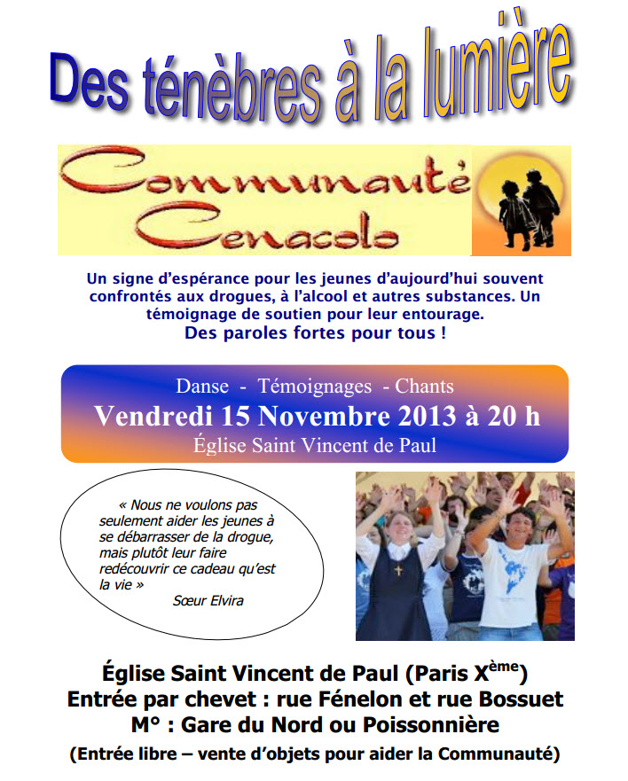 Nous avons reçu avec prière d’insérer l’invitation ci-jointe à une soirée festive d’une communauté catholique, CENACOLO. (Site Internet)
