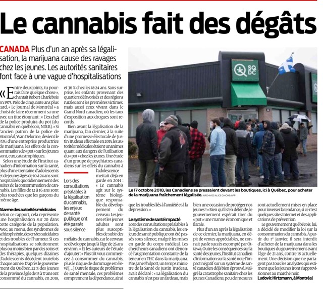Plus d’un an après sa légalisation, la marijuana cause des ravages chez les jeunes. Les autorités sanitaires font face à une vague d’hospitalisations, dues à sa consommation