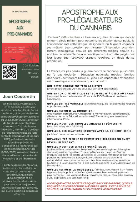 Les deux experts sont chacun chargés d’exposer les arguments sur lesquels ils fondent et motivent leur avis en réponse à quatre questions. J’ai ainsi développé les raisons qui s’opposaient à la légalisation récréative du cannabis. Ce sont les réponses à ces quatre questions qui sont reprises dans cette lettre.