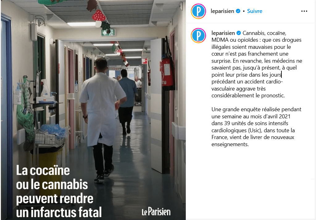 Outre la dépendance, la consommation de cocaïne peut entraîner des conséquences médicales aiguës, principalement cardiovasculaires (infarctus du myocarde, accident vasculaire cérébral, thrombose) et psychiatriques (dépression, anxiété, tentatives de suicide), rappelle SpF.